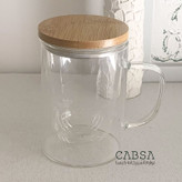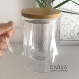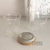 لیوان دمنوش پیرکس صافی دار درب بامبو زیره استیل 450 میل وارداتی