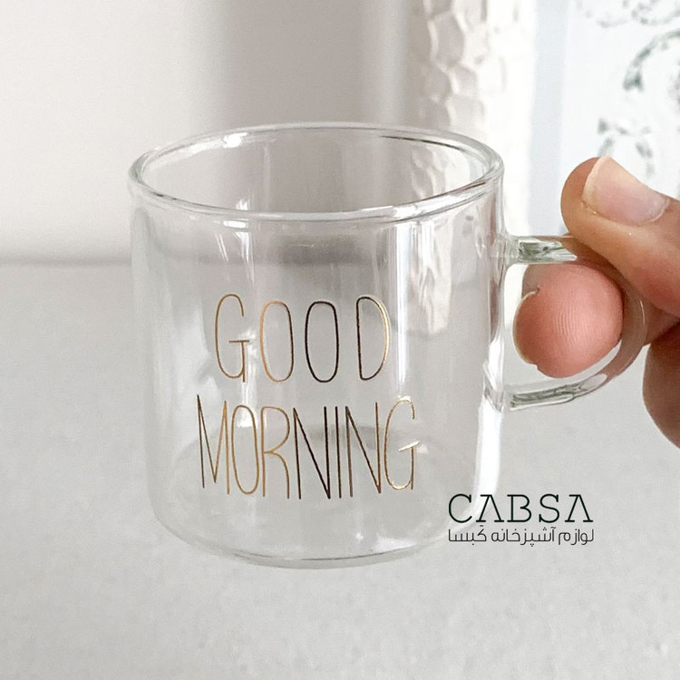 شات پیرکس قهوه خوری نوشته گود مورنینگ طلایی وارداتی