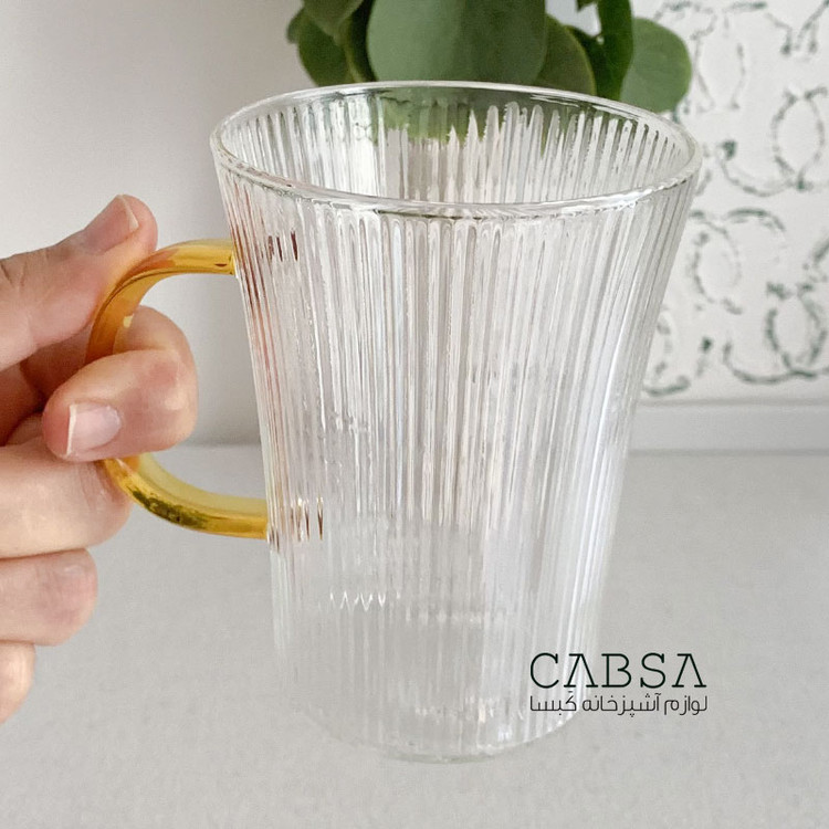لیوان پیرکس دسته دار دسته رنگی مدل شیاردار بسته 1 عددی وارداتی