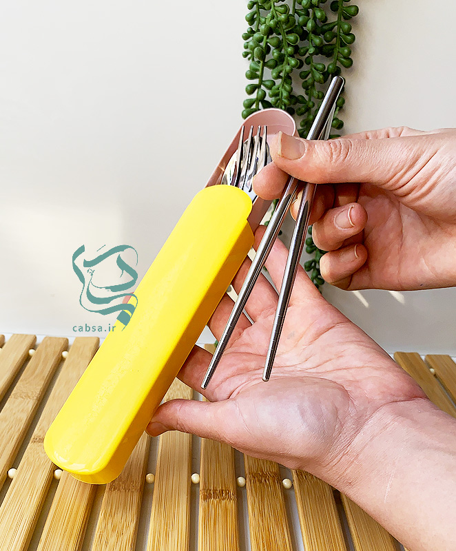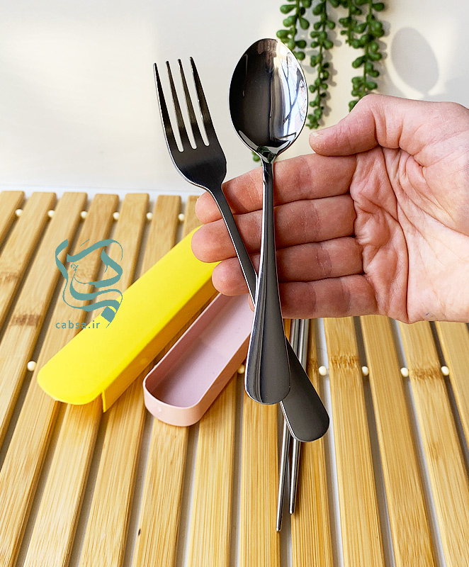 ابعاد: طول قاشق وچنگال ۱۷ سانت طول چاپستیک ۱۸ سانت