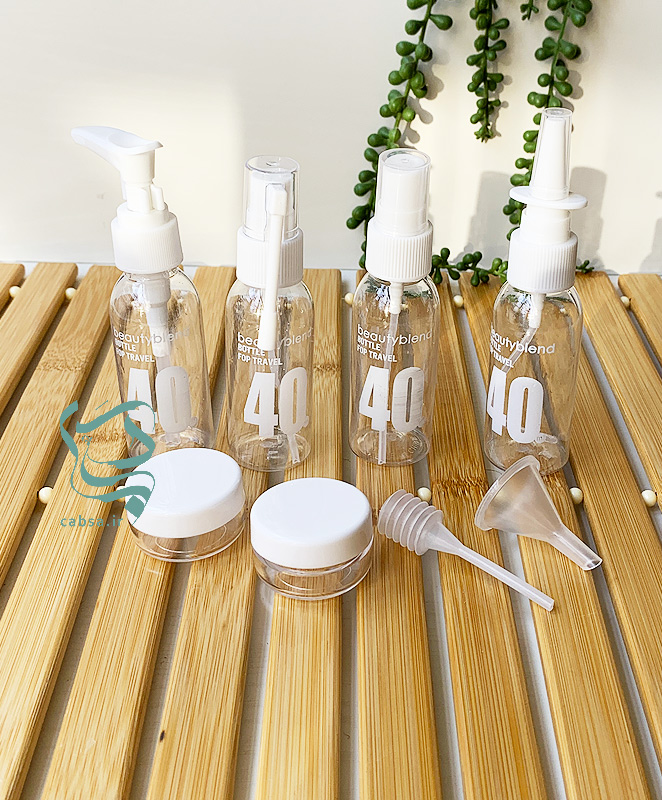 اقلام سرویس: اسپری مناسب نگهداری ( عطر ، الکل ، تونر و ….) / بطری در دکمه ای مناسب ( مناسب شامپو ، ژل ، کرم و…) / بطری پمپی مناسب ( کرم ، ژل و…) /بطری قطره ای ( برای قطره لنز و..) / بطری ( برای خوشبو کننده دهان و مسکن دندان و…) /کیف زیپ دار پلاستیکی شفاف