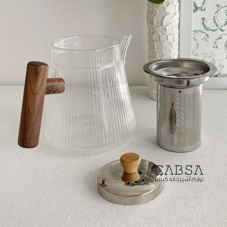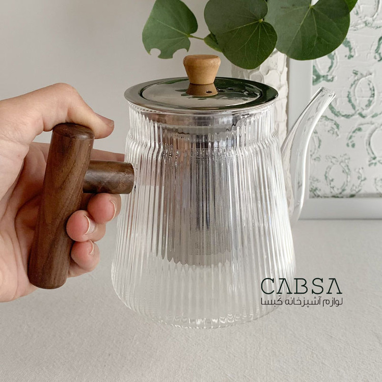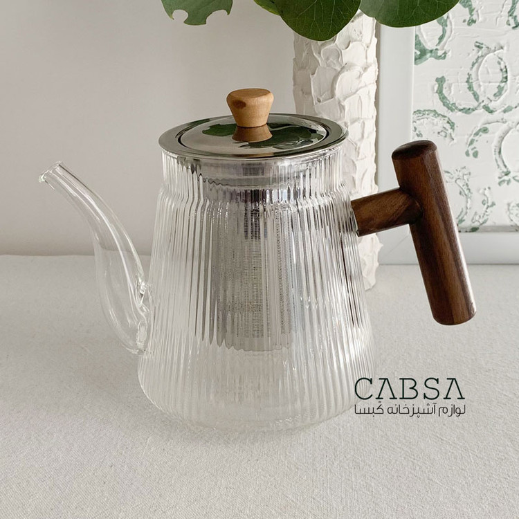 قوری پیرکس 800 میل صافی دار استیل طرح پیرکس شیاردار برند مادام کوکو ترکیه